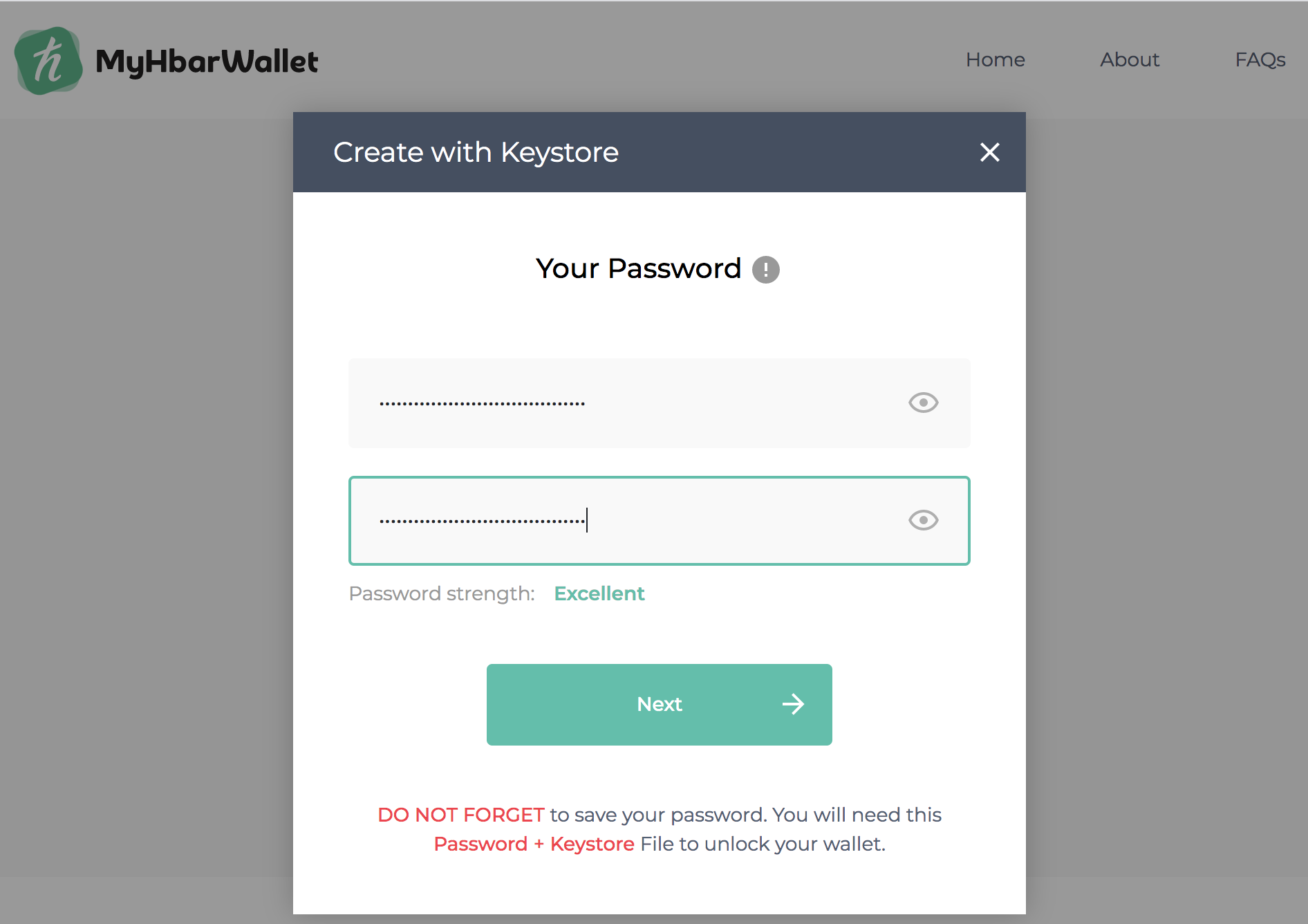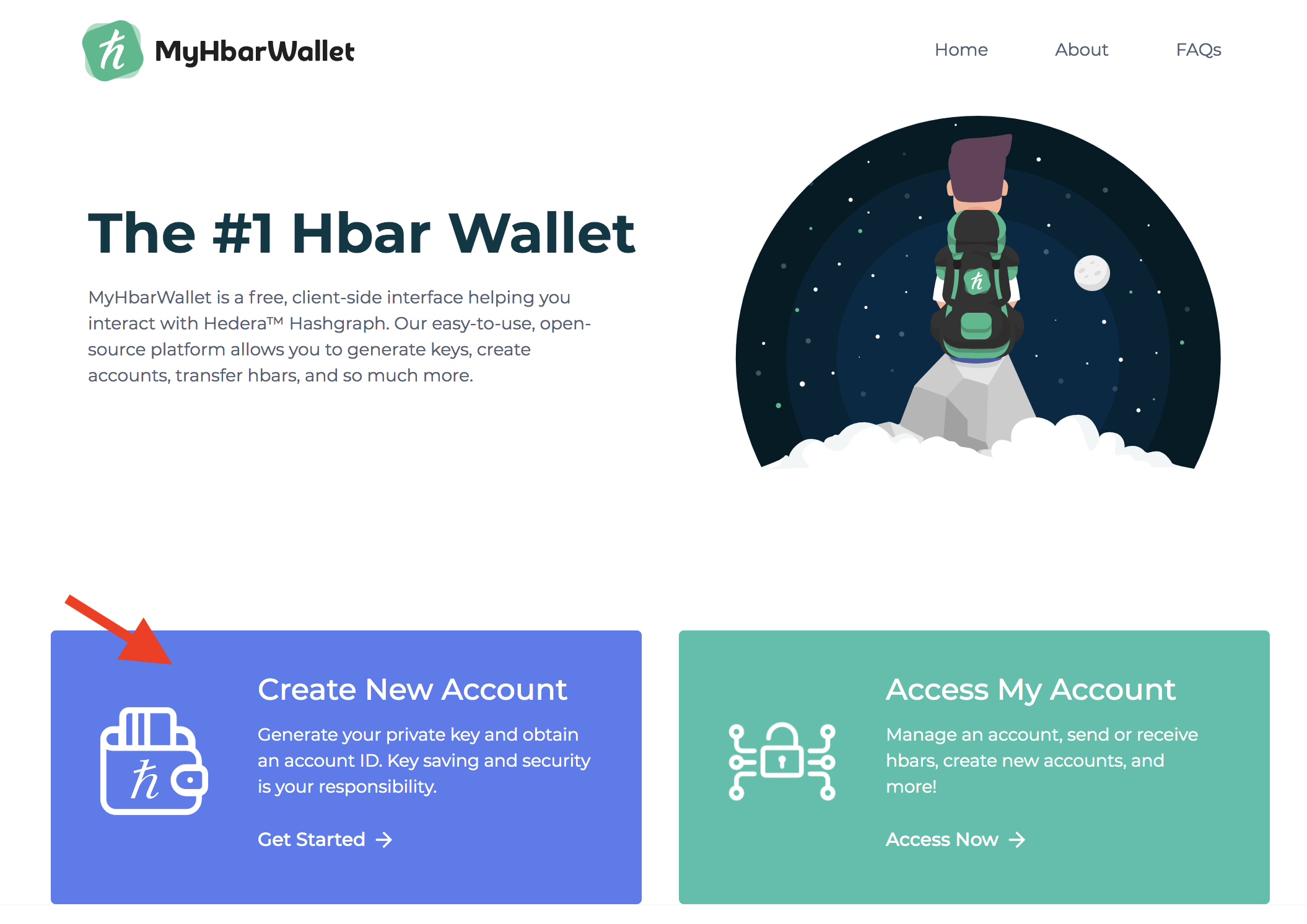 - Go to MyHbarWallet.com and select "Create New Account"