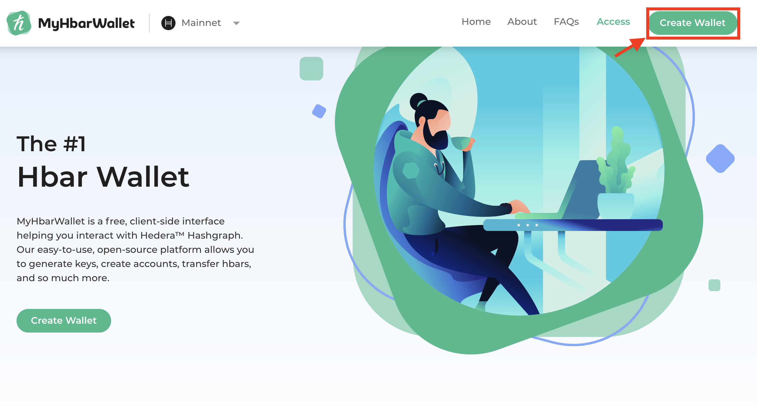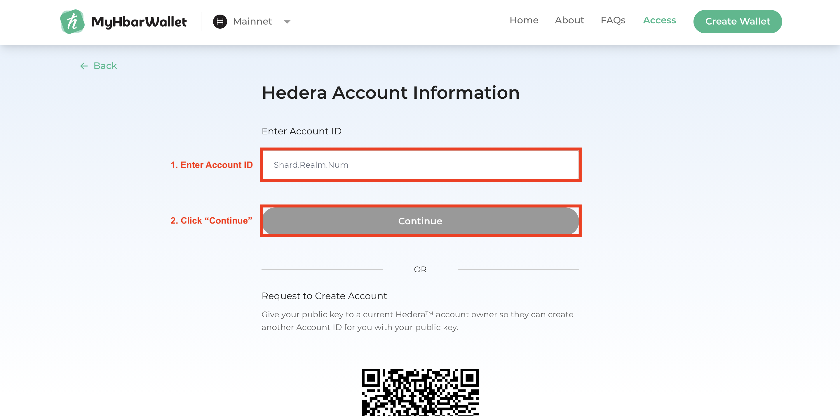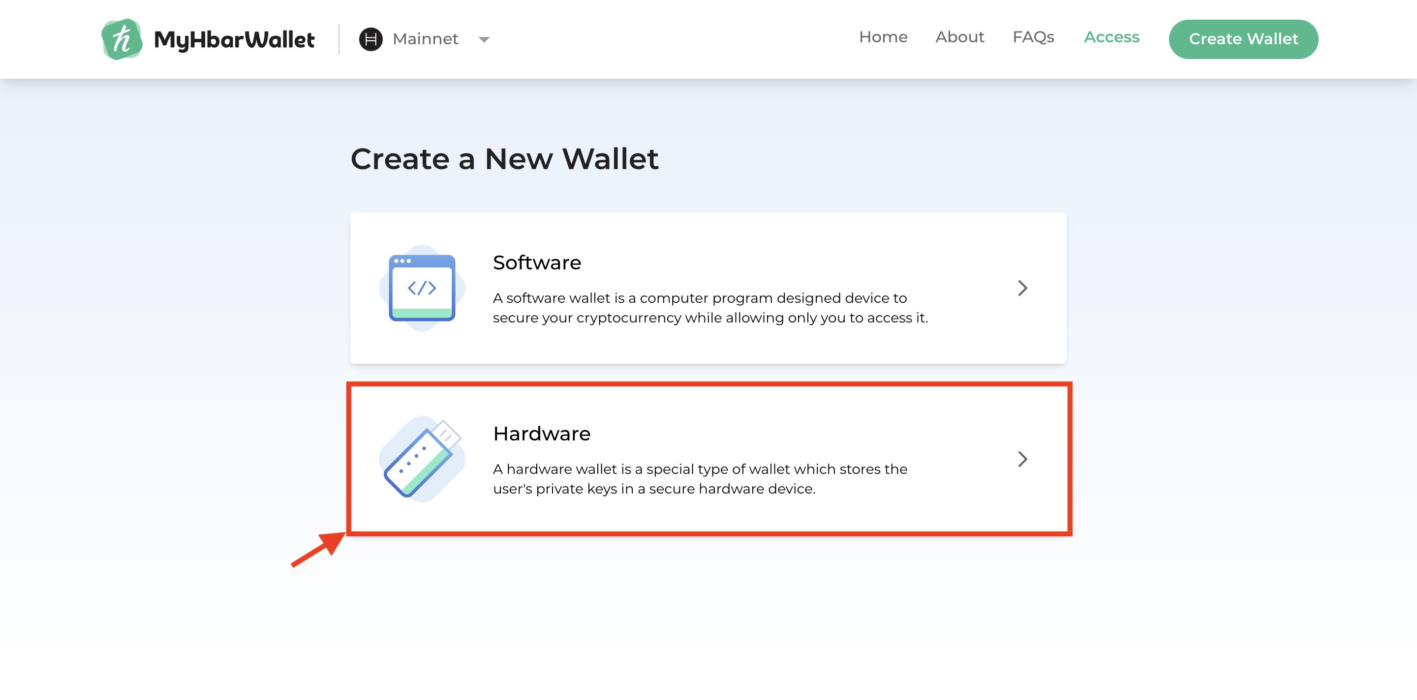 - Go to MyHbarWallet.com and select "Create Wallet"