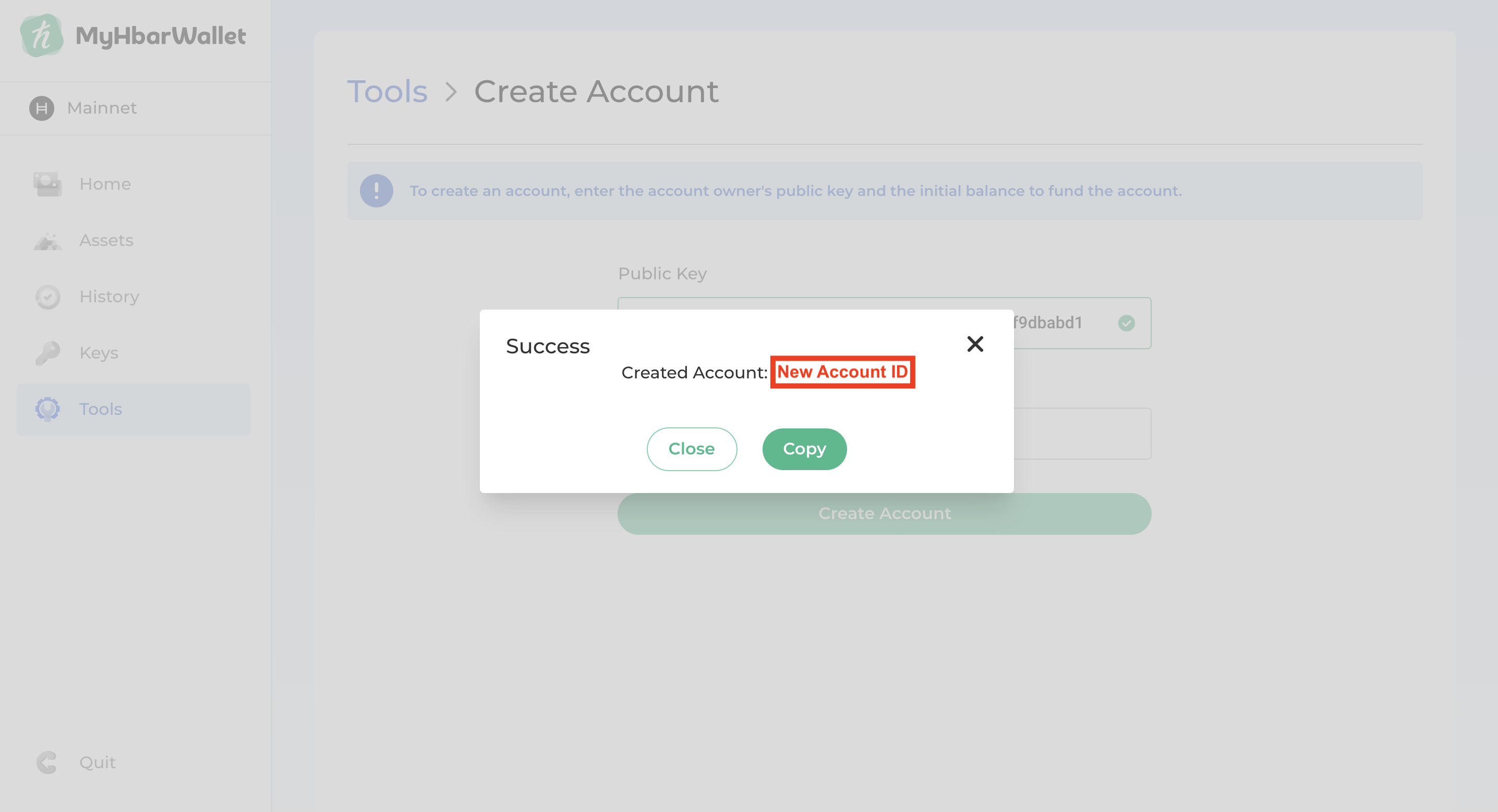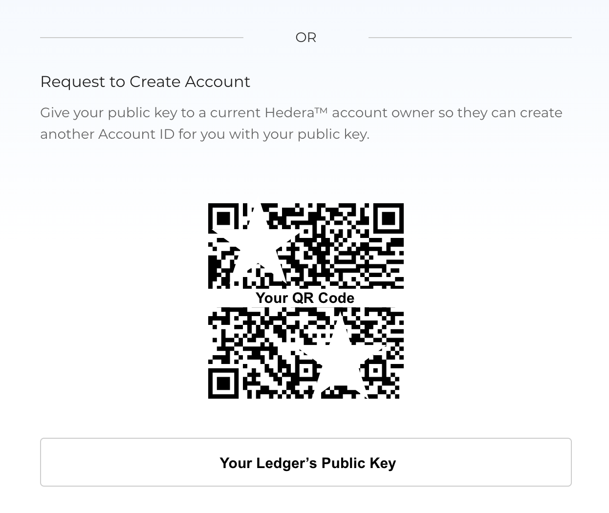 - MyHbarWallet will now show your Ledger's public key. You may need to scroll down a little to see them. Copy the public key to give to the existing MyHbarWallet account.