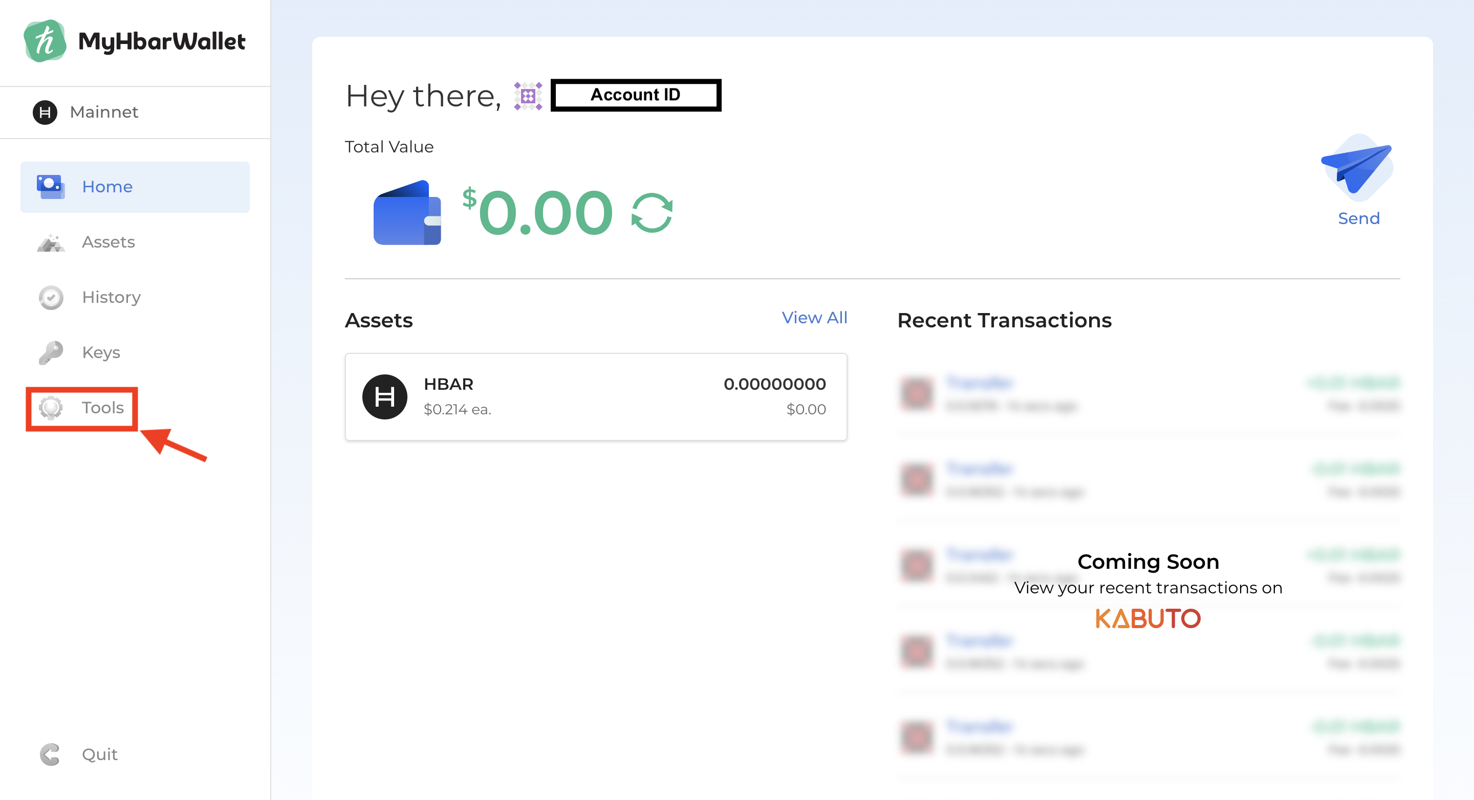 - You now have access to your new MyHbarWallet account through your Ledger device